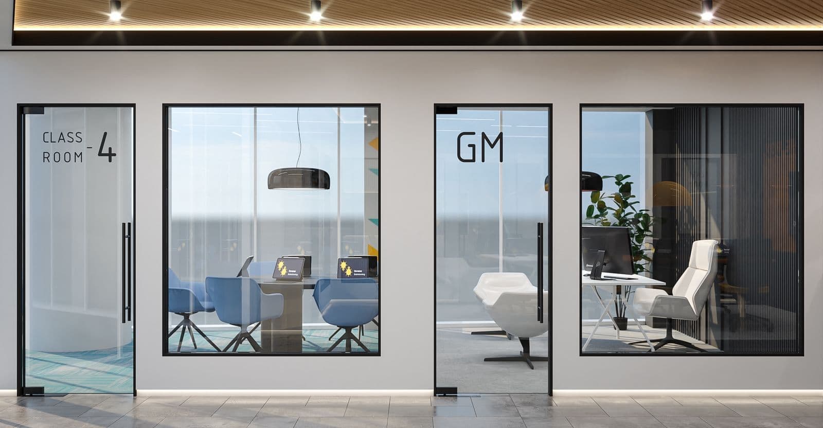 Material library, Custom display & shelving systems, Café seating area, Lounge & consultation zones